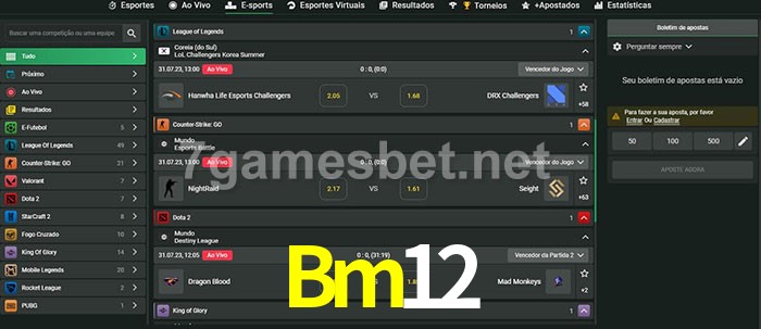 O Bm12 oferece uma grande seleção de opções de apostas em e-sports com probabilidades competitivas